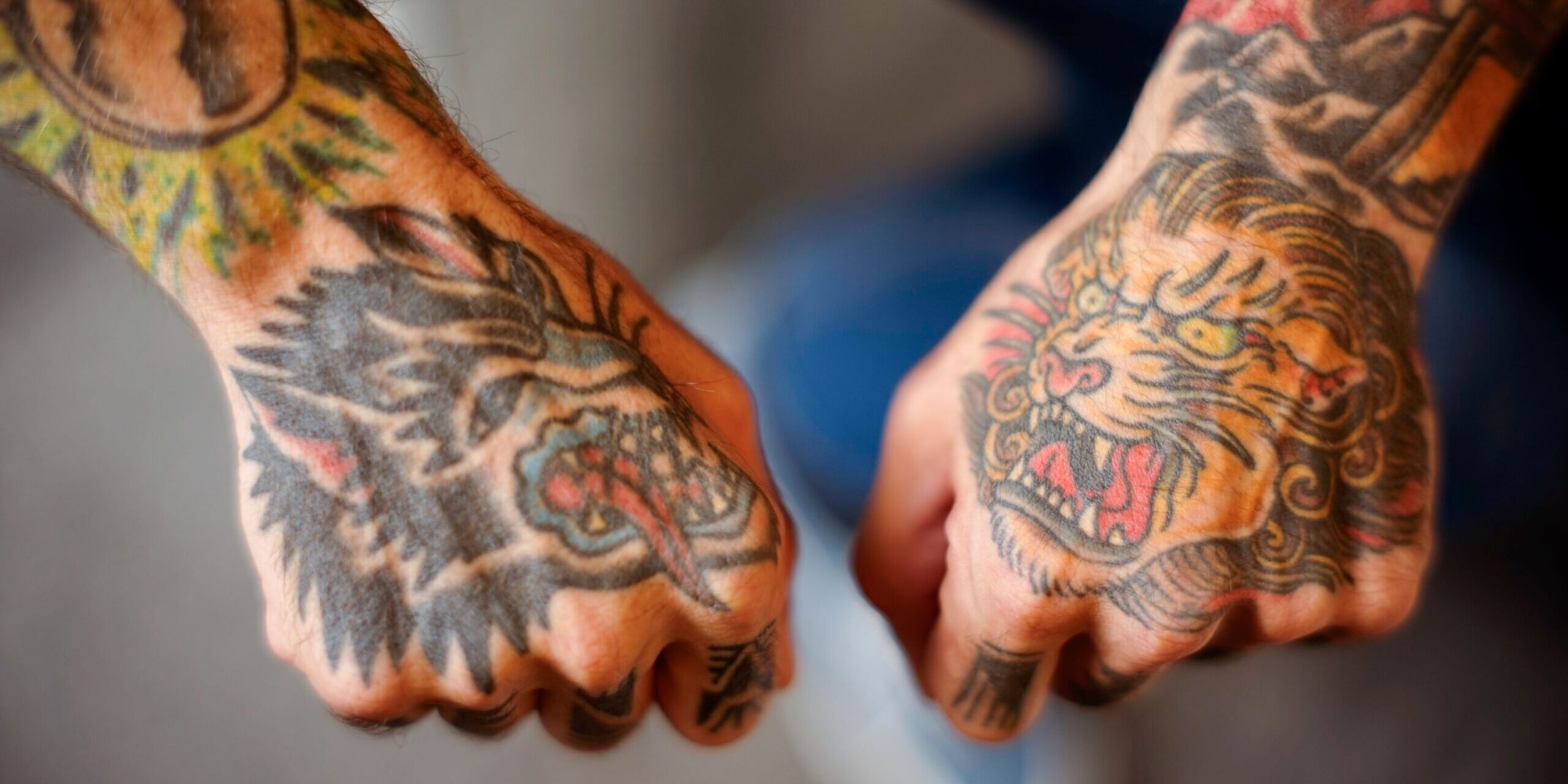 “ผมคิดว่า ‘ผมจะสักสักสักอัน ผมจะไม่มีวันสูญเสียสิ่งนั้นไป’” เขากล่าว โดยโชว์ภาพนักบุญหลากสีที่ทอดยาวจากไหล่ซ้ายไปจนถึงข้อศอก